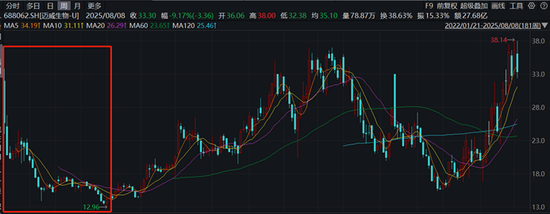 比较有意思的是,在董事长炒自家股票大赚百万的期间,也即在2022年1月18日迈威生物上市至2022年7月18日期间,迈威生物的股价走势挺惨的,从刚上市时的30多元,一路暴跌到2022年7月的16元左右,跌了将近一半;期间仅有两波幅度并不大的反弹。