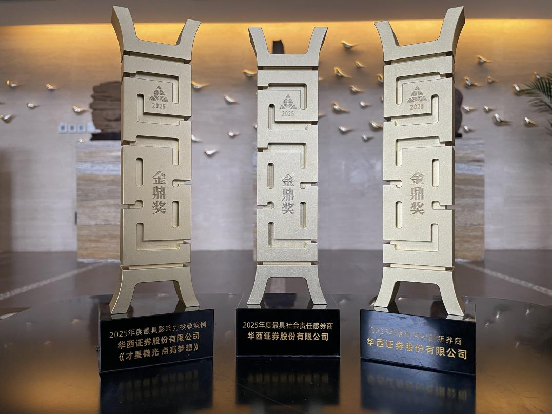 11月28日下午,由《每日经济新闻》主办的“2025资本市场高质量发展论坛”在成都举行,论坛重磅揭晓2025年度“金鼎奖”榜单。 华西证券 凭借在人工智能深度应用、金融普惠实践及社会责任履行中的突出表现,一举斩获“2025年度优秀AI创新券商”“2025年度最具影响力投教案例”“2025年度最具社会责任感券商”三项殊荣。