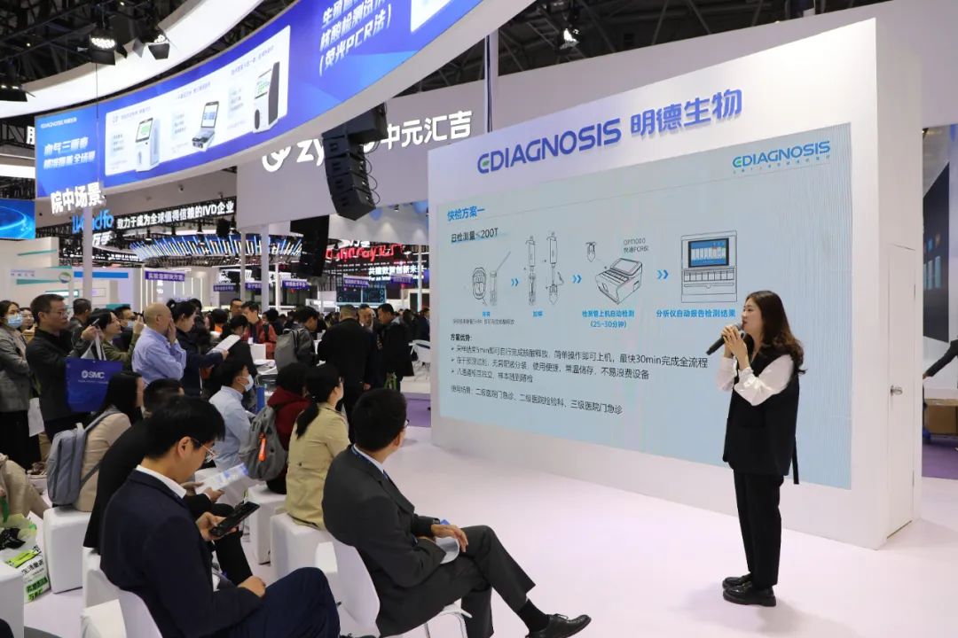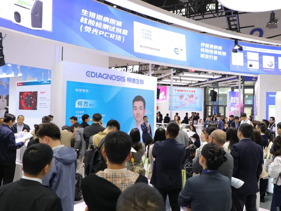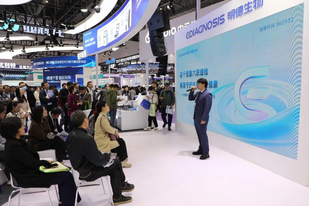 发布会现场气氛热烈,明德展台始终被人流包围。互动环节更是激发了观众的热情参与,人潮涌动,展现出了明德生物新品的吸引力。