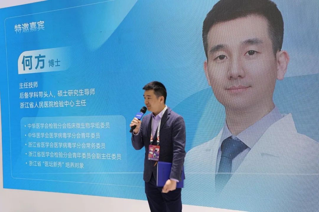 大会首日,明德生物以“更全面,更精准”为主题,举办了备受期待的新品发布会。临床分子生物学检验领域的权威专家何方主任亲临现场,并发表开场致辞。何方主任就病原微生物分子诊断领域的技术革新如何推动诊疗效率与质量的提升展开了深度分析,为发布会奠定专业且极具前瞻性的基调。