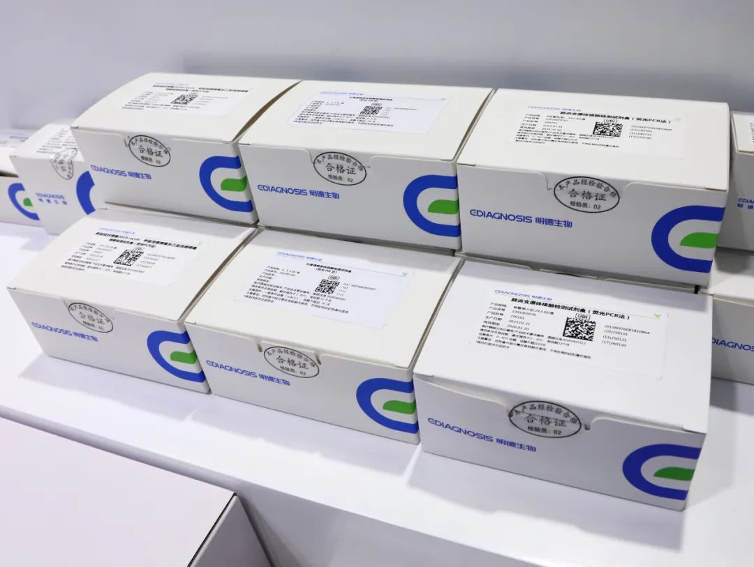 随后,明德生物正式推出两款年度重磅新品。其一是针对性传播疾病的生殖道病原体核酸检测试剂盒,该试剂盒涵盖 CT、NG、UU、UP、MG、MH 这6种常见病原体,可在单次检测中精准识别单一及混合感染,突破传统单靶标检测局限。该产品通过冻干预混预分装技术,有效减少人工操作步骤,配合 QPT1000 快速 PCR 仪使用时,仅需 35 分钟即可完成扩增,为临床提供更高效的检测方案,助力性传播疾病精准防控。