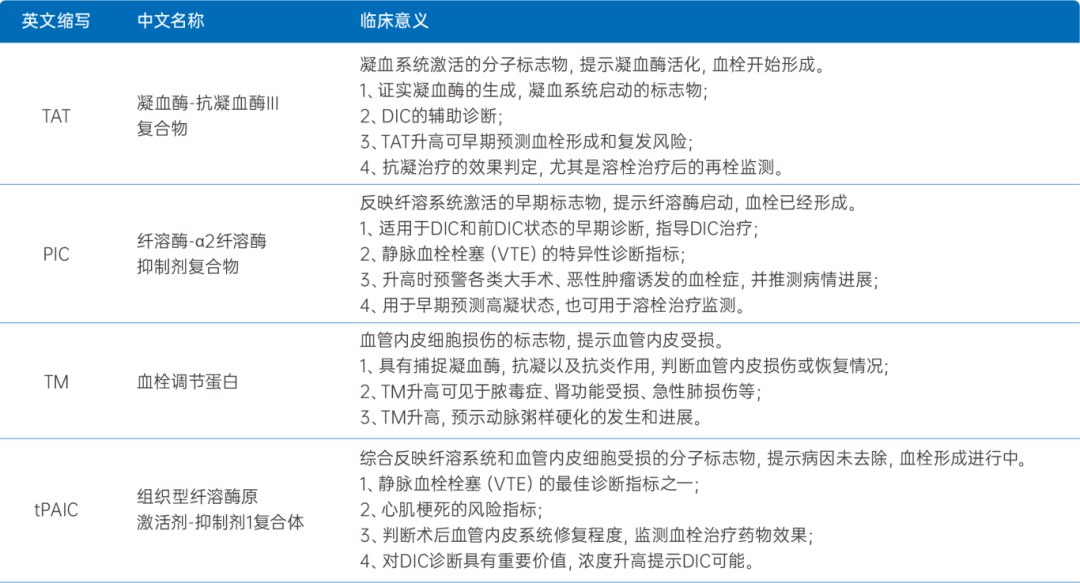 · 全面评估:同步检测凝血、纤溶、内皮三大系统关键标志物(TAT、PIC、TM、tPAIC),提供全景式血栓风险评估。