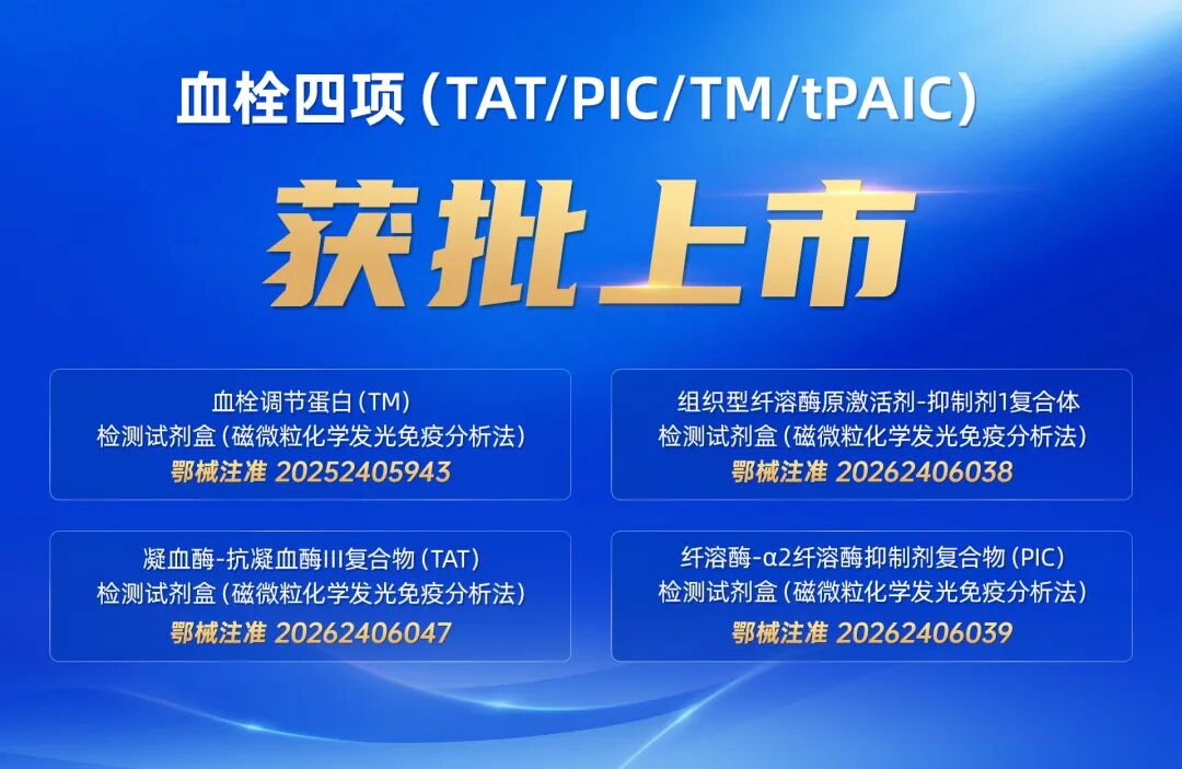 血栓四项的上市,不仅是我们对体外诊断免疫产品长期投入的成果,更是我们响应《重症凝血病标准化评估中国专家共识(2025版)》等权威指南,推动血栓性疾病管理迈向“早期预警、精准干预”新阶段的重要实践。