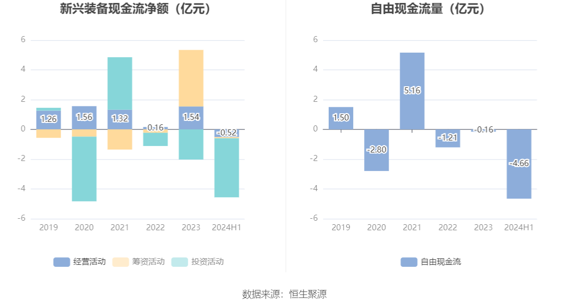 进一步统计发现,2024年上半年公司自由现金流为-4.66亿元,上年同期为-2.12亿元。