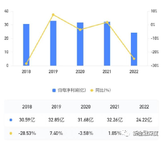 据梳理,上一次郑州银行净利出现大幅滑坡还是在2018年,彼时该行净利润从2017年的42.8亿元降至30.59亿元,降幅为28.53%。此后的2018年至2021年,郑州银行的净利润一直在30亿元至33亿元之间徘徊。