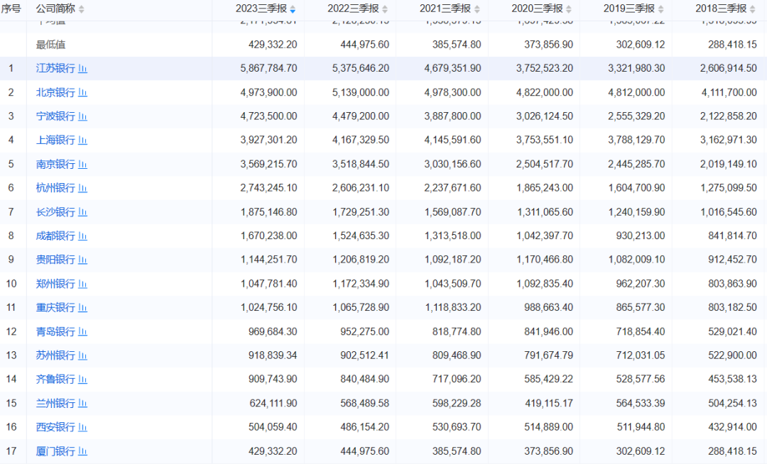 此外,前三季度营收下降的城商行还有上海银行、贵阳银行、重庆银行、厦门银行、北京银行,降幅分别为5.75%,具体营收额如下,蜜妹不一一说了。