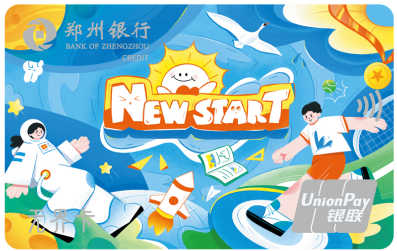 追梦青春信用卡是郑州银行面向临近毕业大学生客群发行的专属0额度数字信用卡,卡面主题NEW START增强了大学生身份认同感,同时采用手绘的方式和绚烂的色彩塑造了大学生不负韶华、勇敢追梦的情景。