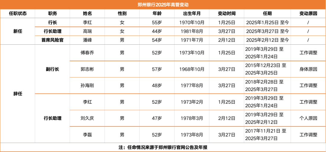 郑州银行年报出炉!年内高管频频调整:“三进六出”。