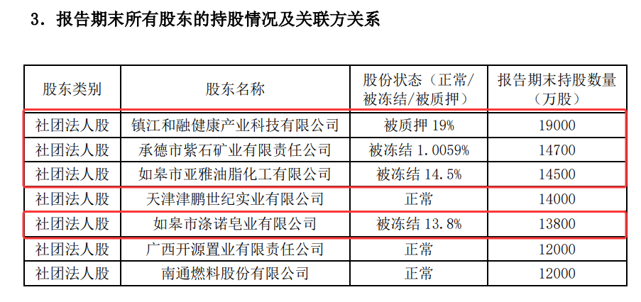 第一大股东镇江和融健康产业科技有限公司、第二大股东承德市紫石矿业有限责任公司、第三大股东如皋市亚雅油脂化工有限公司和第四大股东如皋市涤诺皂业有限公司,都已经成了失信被执行人,所持部分弘康人寿股权被质押或者冻结状态。