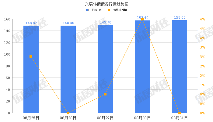 乐居财经 09月01日,“兴瑞转债”(127090)早盘拉高,截至11:10,涨幅10.07%,报173.91元。总成交量90.48万手,成交额15.48亿元。