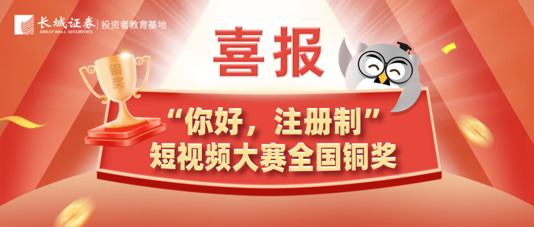 近日,经过广泛征集、平台展播与专家评选等环节,“你好,注册制”短视频大赛评选结果终于出炉,我司作品《敲黑板之注册制改革要点》荣获全国铜奖。该奖项是主办方及广大投资者对公司投教作品的认可。