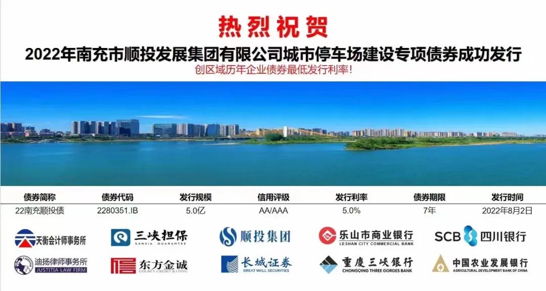 该债券为南充市顺庆区首次亮相资本市场,并创下南充市范围内企业债券的最低利率水平。债券募集资金用于城市停车场项目建设,将有效地改善南充市主城区“停车难”问题,对城区面貌改善和环境提升具有重大意义。