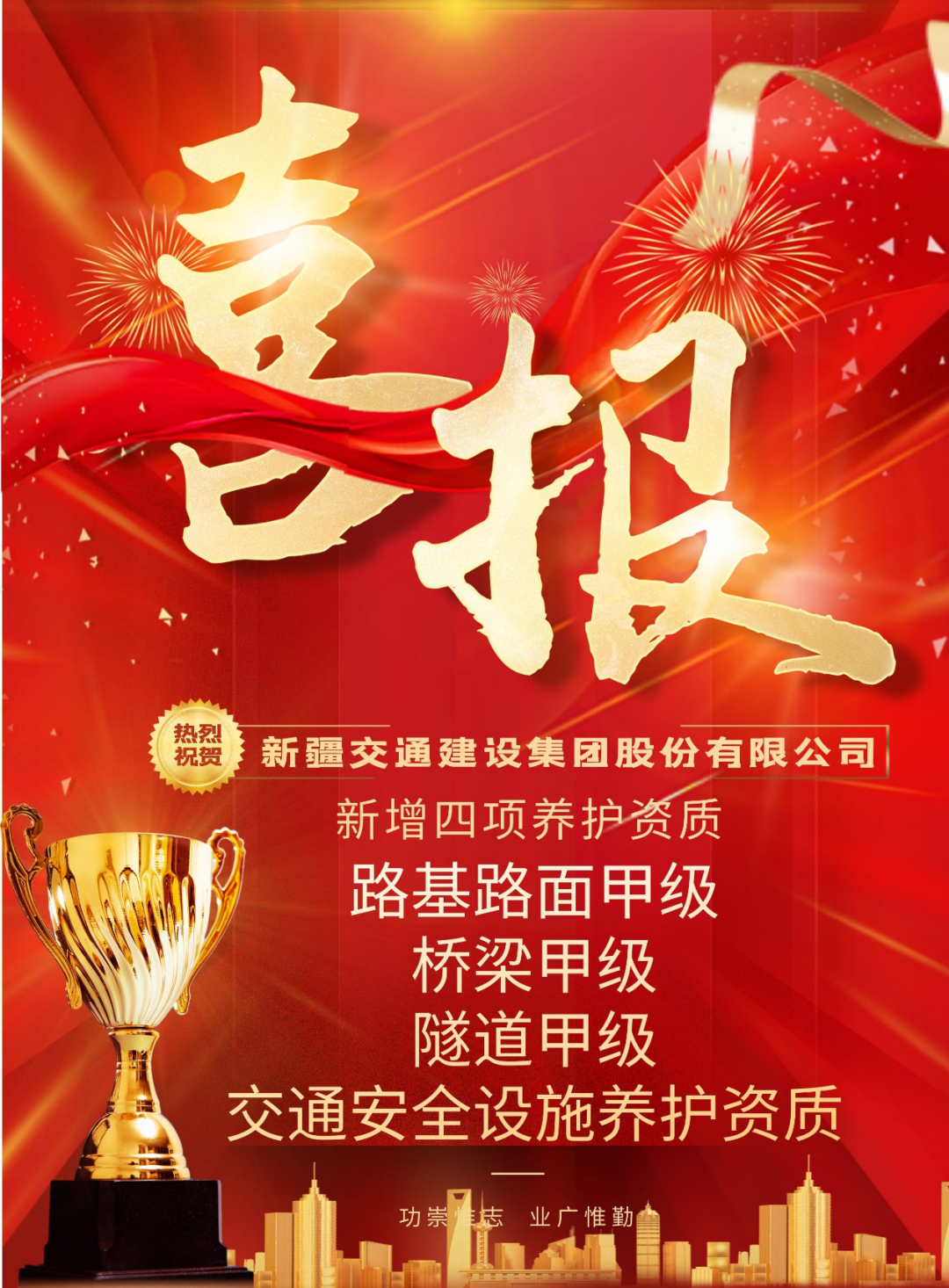 喜报!新疆交建集团新增四项公路养护资质