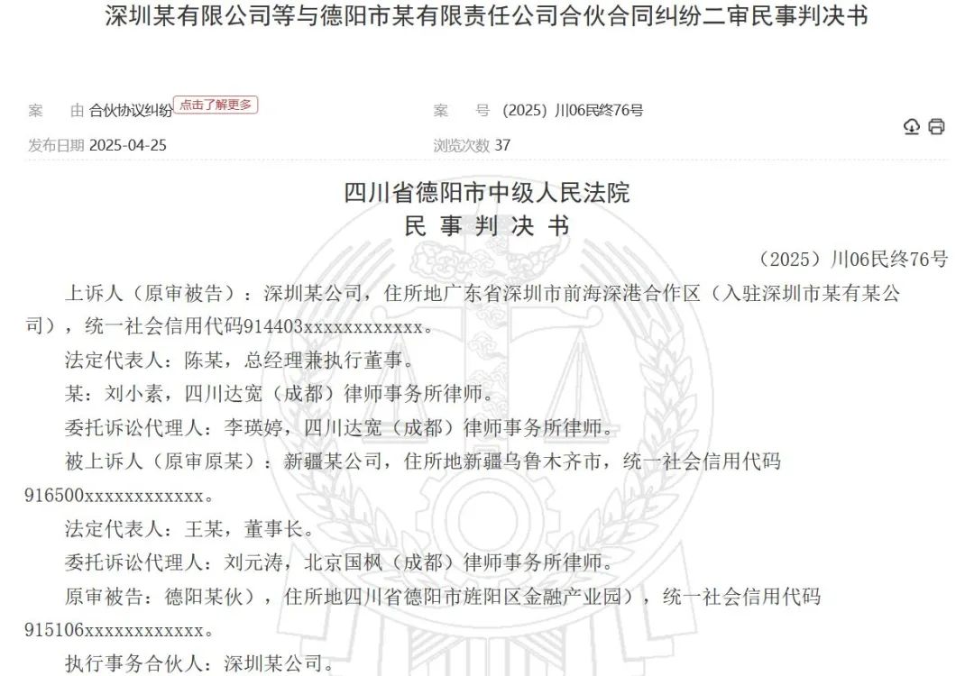 2025年4月25日,中国裁判文书网刊登《深圳某有限公司等与德阳市某有限责任公司合伙合同纠纷二审民事判决书》【(2025)川06民终76号】,披露了新疆交建(002941.SZ)中标四川一个8.5亿元项目背后的故事。