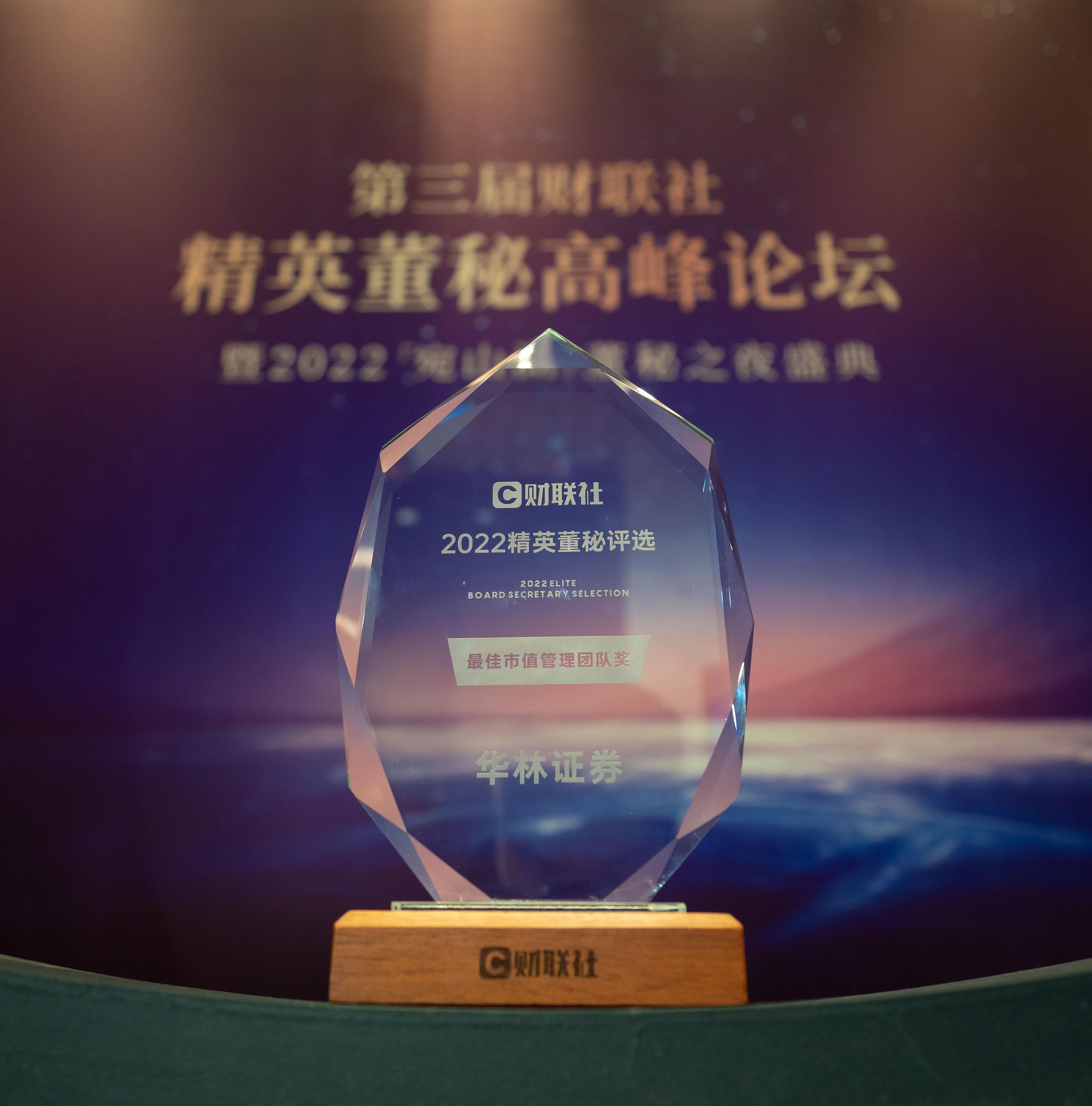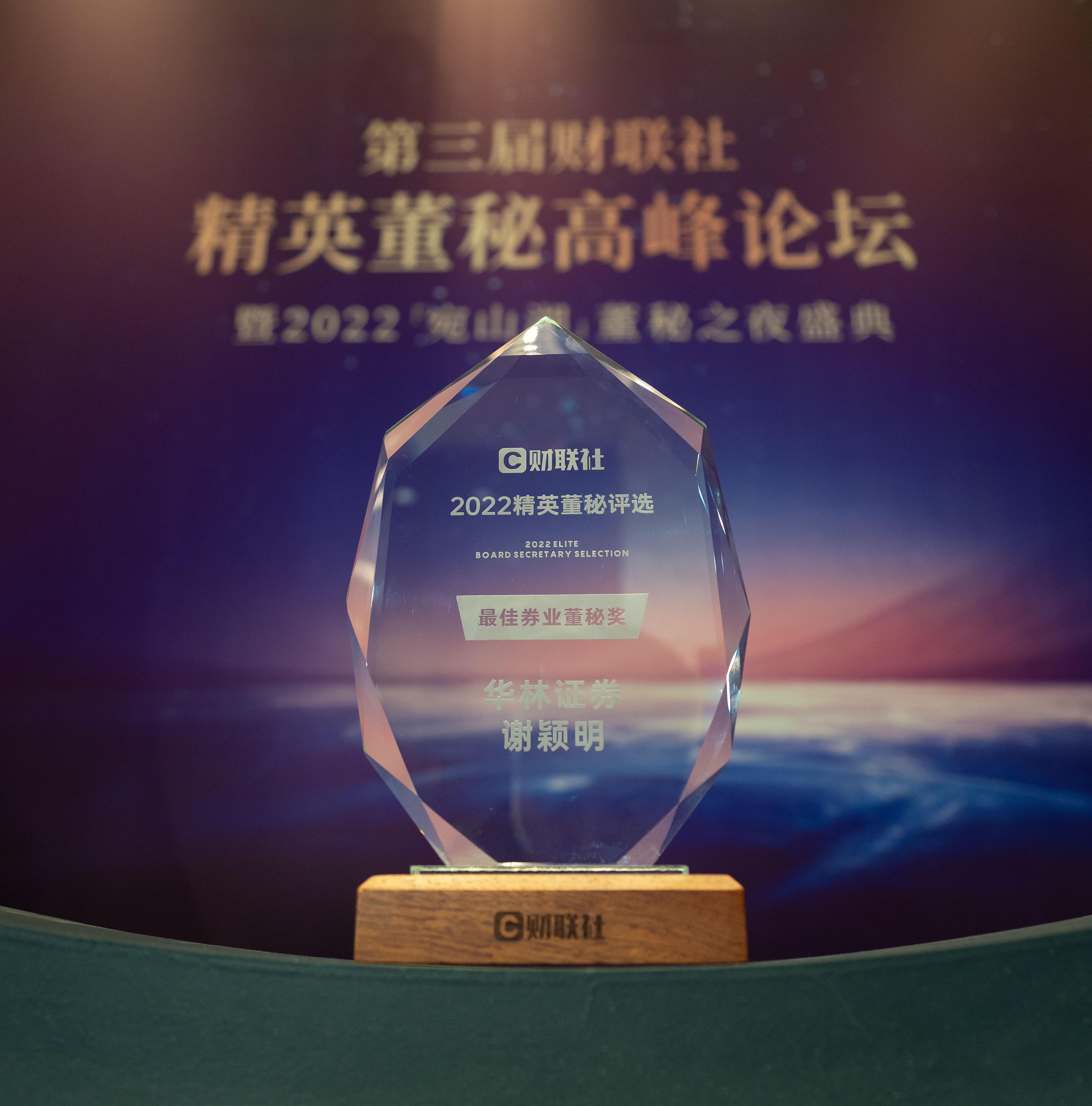 中新经纬11月4日电 2022年11月3日,第三届财联社精英董秘高峰论坛暨2022宛山湖董秘之夜成功举办。经由相关监管机构、机构投资者、证券分析师、个人投资者、财经媒体、资本市场专家委员等组成的专家评审团层层评选,华林证券凭借在公司信息披露、投资者关系管理等多项工作中的优秀表现成功脱颖而出,荣获“最佳市值管理团队奖”,同时公司董事会秘书谢颖明女士荣获“最佳券业董秘奖”。