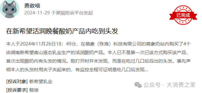 产品投诉不断,保内变质、喝出异物问题突出