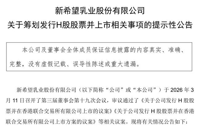 这不是一次普通的融资动作。3月11日,新希望乳业一口气发了十几份公告,核心就一件事:启动赴港上市程序。为了这事儿,董事会还专门“定制”了三位精通港股规则、国际税务和法律合规的独董,这阵仗,明摆着是要动真格。