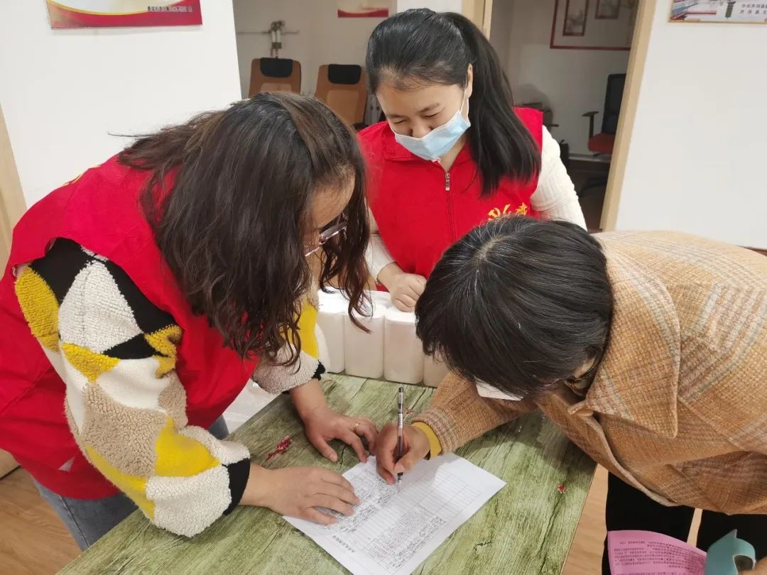 活动结束社区工作人员为参与活动的居民发放小礼品。
