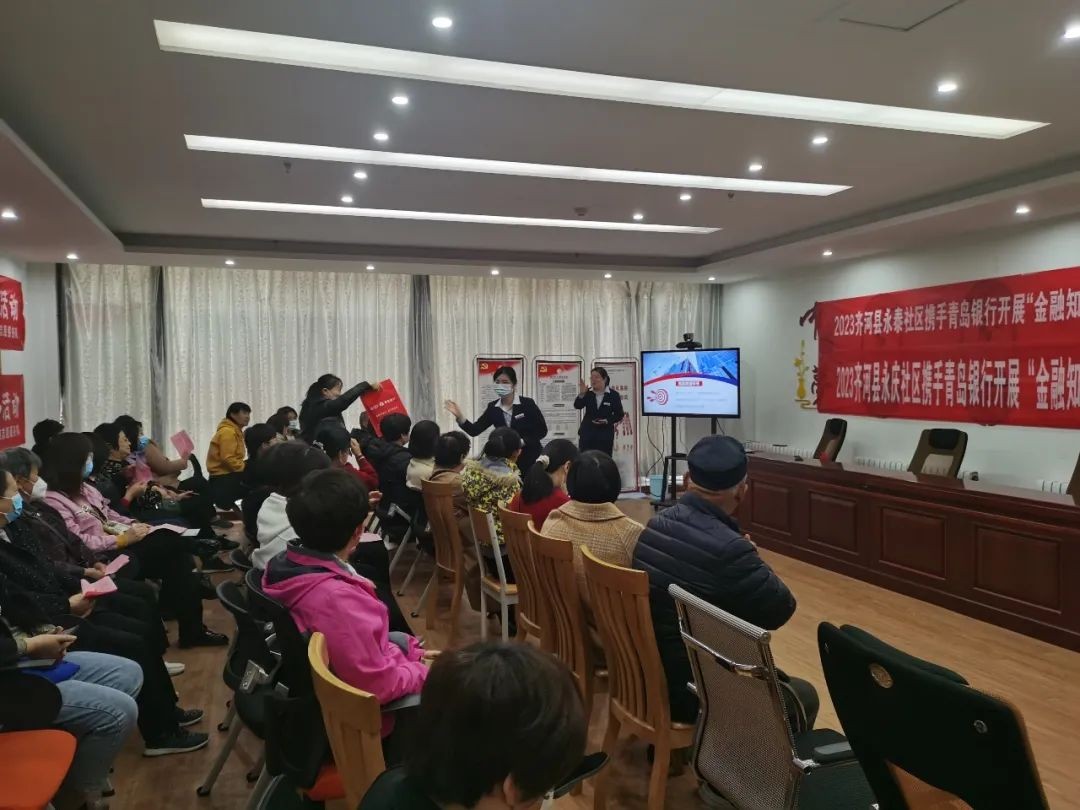 为进一步提高老年人防诈意识和风险防控能力,有效提升老年群体的自我保护意识、维护老年人的合法权益。齐河县永庆社区联合青岛银行开展了以“金融知识进社区关爱老人防诈骗”为主题的防范金融诈骗知识宣传活动。