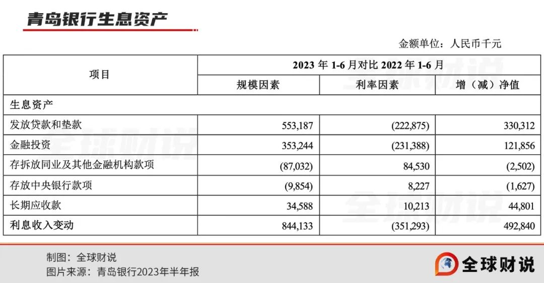 结合该行2023年半年报来看。该行上半年利息收入102.52亿元,同比增加4.93亿元,增长5.05%,该行称主要是本公司的贷款和投资规模扩大,相应利息收入增长所致。发放贷款和垫款利息收入及金融投资利息收入构成本公司利息收入的主要部分。上半年该行发放贷款和垫款利息收入66.22亿元,同比增加3.30亿元,增长5.25%,贷款平均余额同比增加229.77亿元,增长9.20%。从下表可以看到,贷款规模因素带来的利息收入显著大于利率下行因素影响。