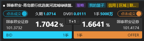 “国泰君安-青岛银行优选黄河流域绿债篮子”是国泰君安证券和青岛银行发挥各自优势、强强联合的创新成果。青岛银行作为山东省最大的法人金融机构和银行间债券市场核心做市商,扎根黄河流域,始终坚持绿色发展导向,储备了一批优质的黄河流域绿色债券,为市场提供较为充足的绿债供应。国泰君安证券具有丰富的债券篮子管理经验与专业的定价能力,深入挖掘客群多样化需求,提供高质量的债券篮子报价,双边报价点差在5BP左右,持续获得市场关注和认可。