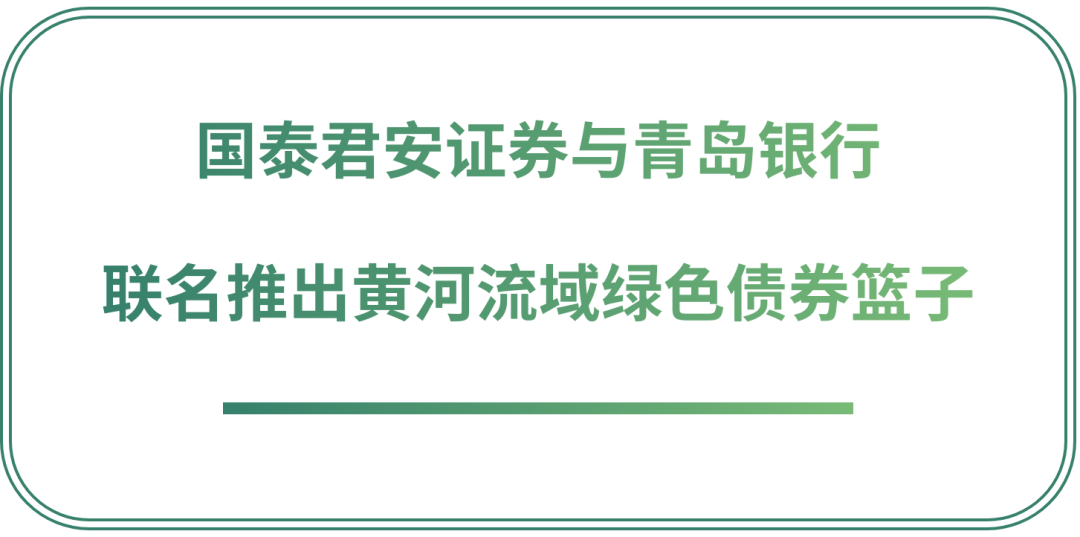 国泰君安证券和青岛银行积极履行“金融服务实体经济”的使命,推出的“国泰君安-青岛银行优选黄河流域绿债篮子”以服务国家战略为目标,通过创新型金融工具助力重点行业和区域经济发展,为实体经济提供更多支持。该篮子作为首支聚焦黄河流域绿色发展的债券篮子,具有定位清晰与成分优质的优势,便于投资者进行一篮子配置与交易。不仅满足了境内外机构投资绿色信用债券的需求,也将提升黄河流域绿债的流动性,促进黄河流域生态保护和高质量发展。