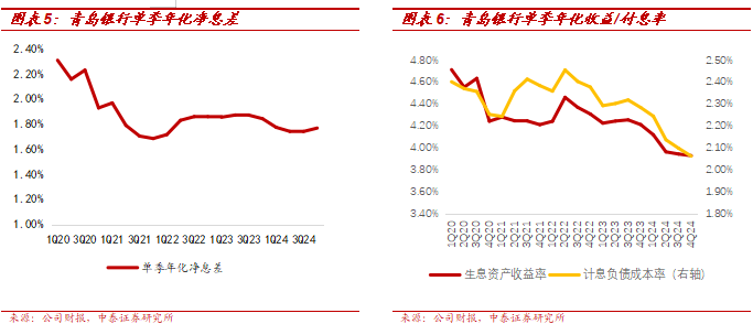 4Q24单季净利息收入环比增长3%,增速较三季度持平,单季年化净息差环比提高3bp至1.77%。四季度生息资产收益率环比下行1bp至3.93%;计息负债成本率环比下降4bp至2.06%,负债支撑力度增强。