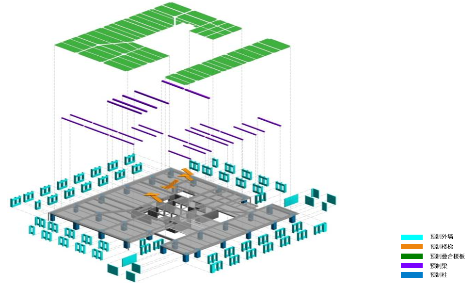 公共建筑装配式一体化技术体系,指通过标准化设计、工厂化生产、装配化施工、信息化应用,以预制混凝土外挂墙板系统化应用为核心,结合预制叠合楼板(钢筋桁架金属楼承板)、预制梁(钢梁)、预制楼梯、轻质预制墙板等预制混凝土构件创新应用,同时融合新材料研发、装配式模板、工具式爬架等先进生产和施工技术,形成适用于公共建筑或工业建筑的创新型装配式一体化技术体系。