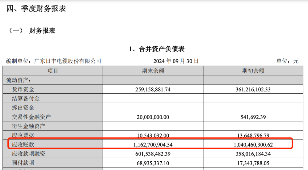 截至2024年前三季度,日丰股份资产负债率46.19%,期末公司流动资产24.98亿元,其中应收账款规模达到11.63亿元。