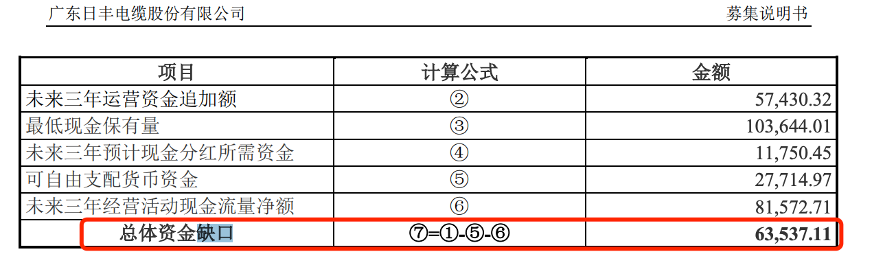 对于定增的原因与目的,日丰股份在公告中进行了更加详细的披露。日丰股份在定增募集说明书中称,综合考虑日常营运资金需要、货币资金余额等,目前的总体资金缺口为6.35亿元。