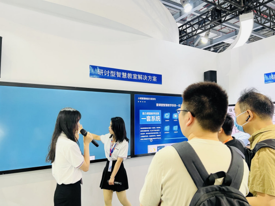 此外,现场还带来了全新发布的录播平板,以及涵盖普教、高职教、幼教等全周期的数字化教学产品及解决方案,以一幅“鸿合牌”智慧教学生态新图景点亮全场,吸引了众多与会嘉宾的参观和体验,快速成为了此次普教展中,嘉宾们必去的“打卡地”之一。