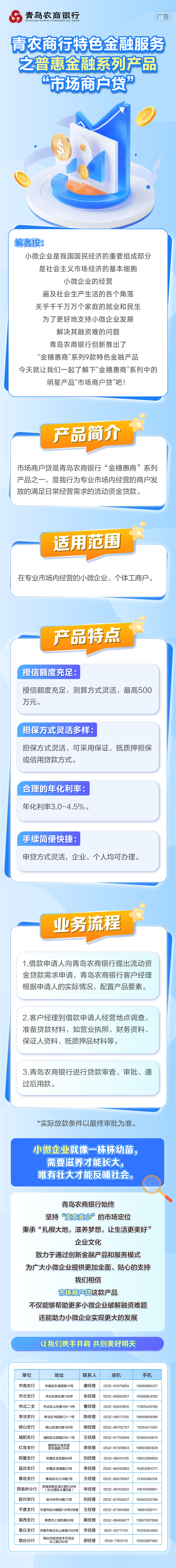 青农商行特色金融服务之普惠金融系列产品“市场商户贷”