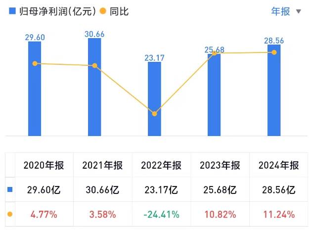 2024年,青农商行实现营业收入110亿元,同比增长6.9%,归属于上市公司股东的净利润28.6亿元,同比增长11%。