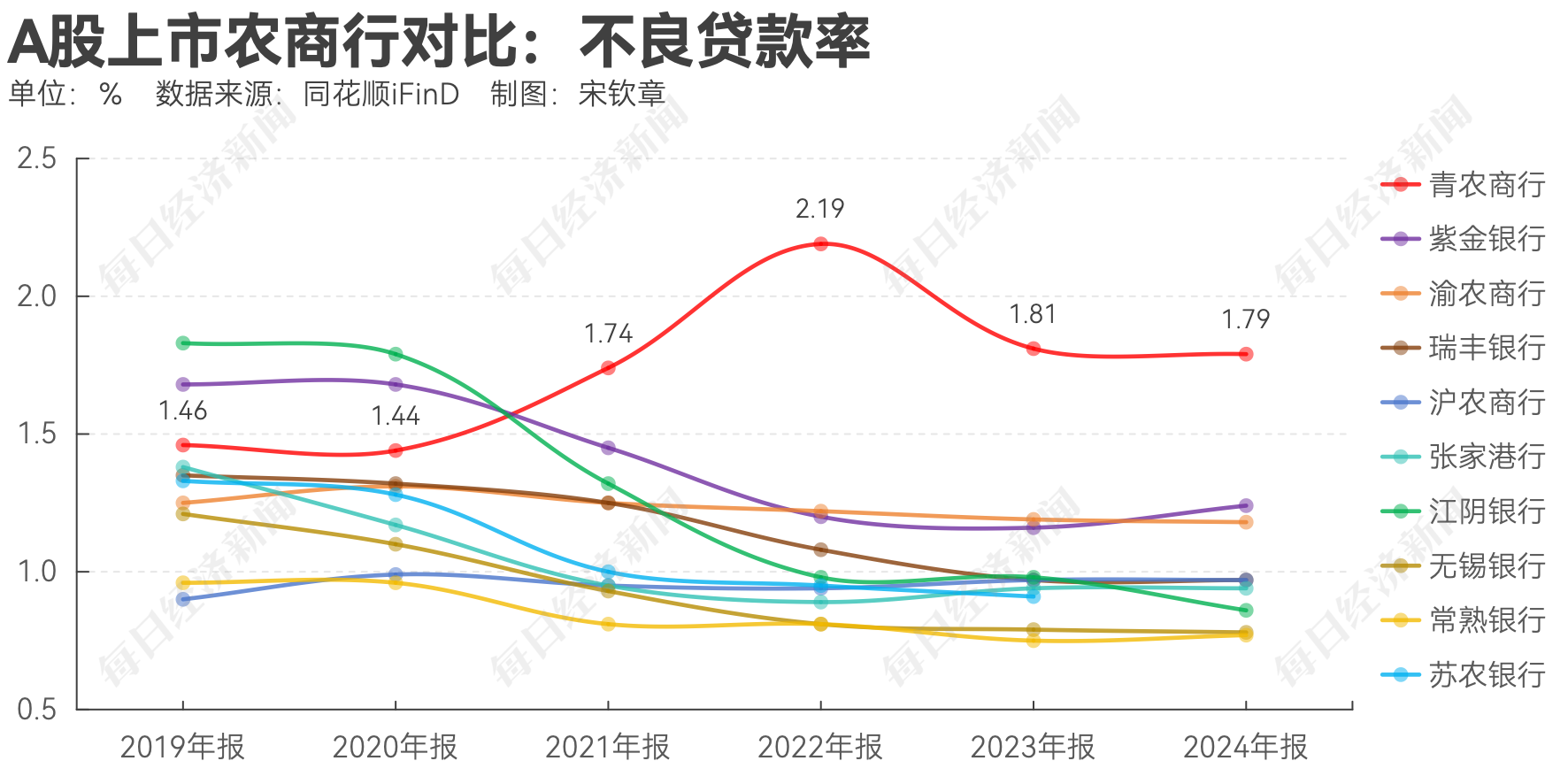 截至2024年末,青农商行的不良贷款率达到1.79%;到了2025年一季度末,这一比率略有下降,为1.77%。