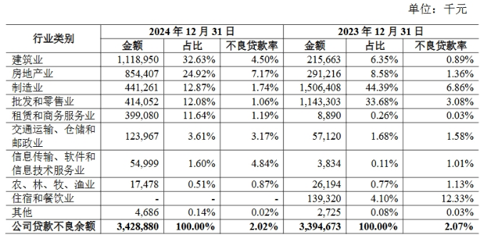 以该行2024年报中披露的按行业划分的公司贷款的不良余额分布情况来看,信贷投向为例,房地产业和建筑业不良贷款率已分别为7.17%和4.50%,虽有所趋降,但仍处相对高位。