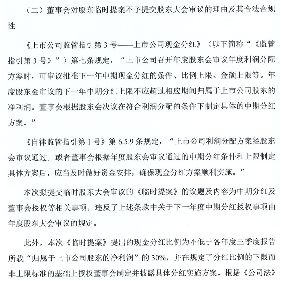 在营收和风控承压的同时,该行的分红政策也遭遇股东质疑。8 月 19 日晚间,青农商行公告称收到股东同发裕(深圳)投资有限责任公司临时提案,要求公司 2025 年至 2027 年连续三年以不低于三季度净利润 30%的比例现金分红。该行董事会以提案违反相关规定为由,否决了该议案并决定不予提交股东大会审议。同时,青农商行计划 2025 年半年度不进行现金分红、送红股及公积金转增股本。