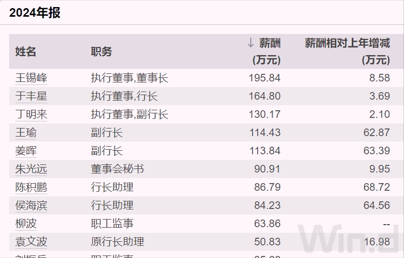 根据年报披露,王锡峰2024年税前薪酬约为196万元,在高层中位列第一。
