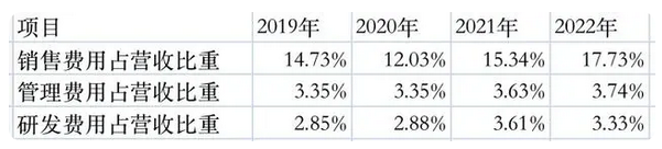 聚焦研发费,增速明显远赶不上销售费。以2022年为例,研发费占比仅3.33%,同比上年的3.61%还出现了下降。而销售费占比则由15.34%升至17.73%。孰轻孰重呢?