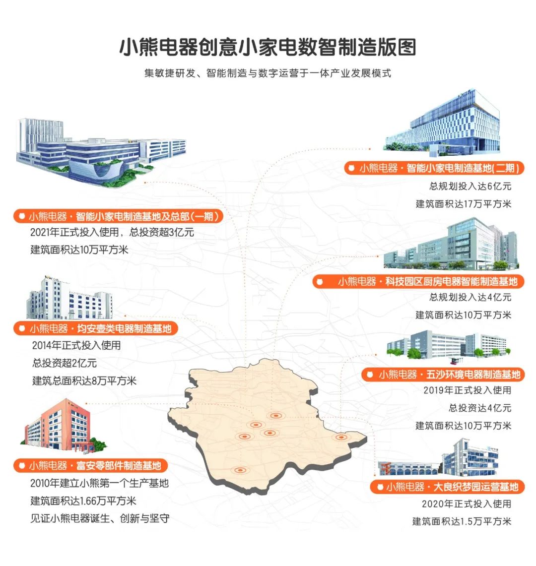在数字化时代,智能制造转型也是企业的必经之路。2022年5月,小熊电器智能小家电制造基地(二期)项目正式动工,计划打造为全球小家电智能制造示范基地。据悉,该项目总投资6亿元,占地面积85亩,总建筑面积约20万平方米。预计项目全部投产后可实现年产量1500万台,年产值可达15-20亿元。