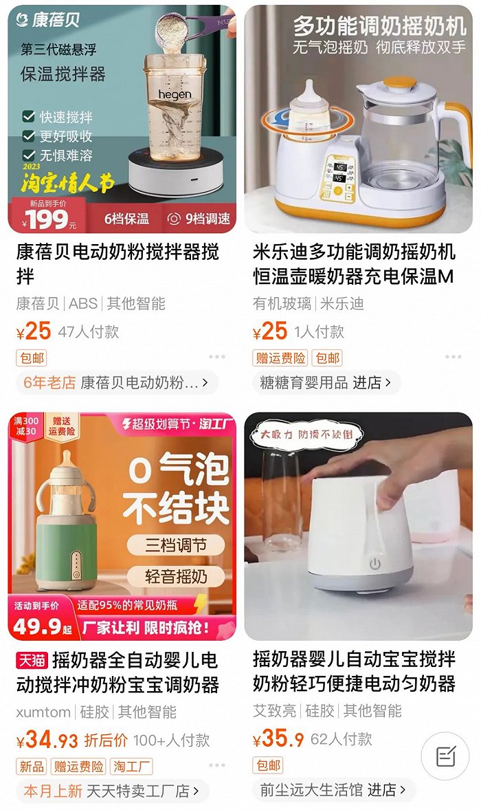 打开淘宝搜索摇奶器,产品明显分为两档。