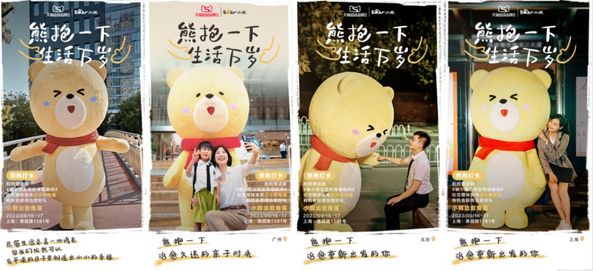 2023年3月,小熊电器用美景、美食、诗词和产品的“同框”迎接开年,打造穿越古今的“春季大地食装秀”;9月份,小熊电器在多地举行熊抱快闪巡游并设置“小熊治愈角落”快闪店,为年轻人送上大大熊抱,同月又在成都落地首家线下体验店。