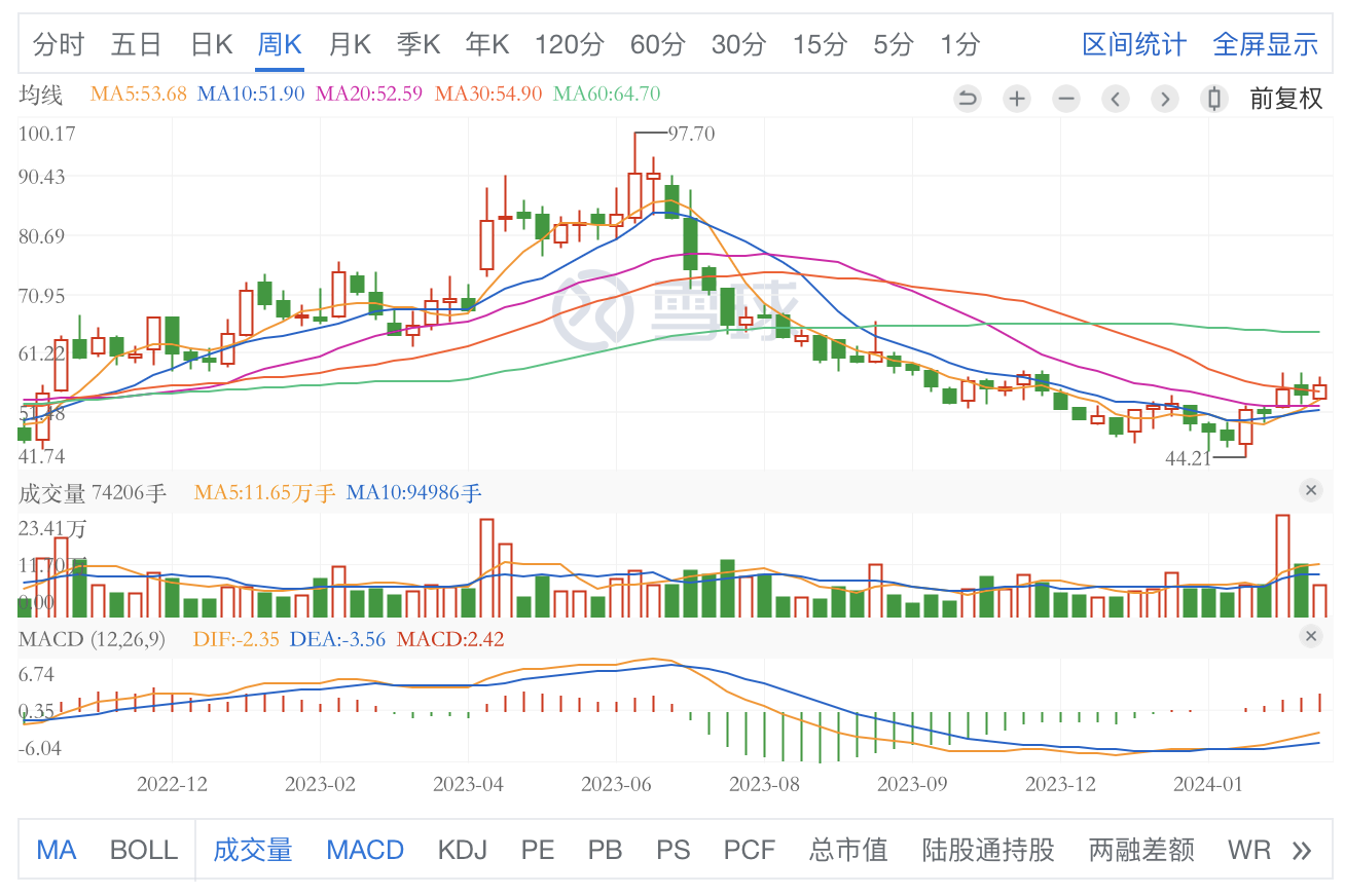 但从2023年6月下旬开始,小熊电器的股价就开始出现大幅下跌。截至3月13日收盘,其股价已从6月高点时的97.7元/股降至55元/股左右,不到九个月时间股价下跌超四成,市值为88亿。