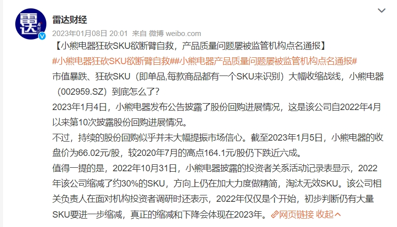 2022年,美的小家电选择关停并转了900多个SKU,总体约亏损2000多万元。