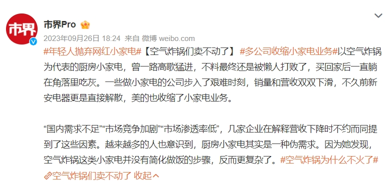 然而,面对火热的小家电市场,也是“几家欢喜几家愁”。