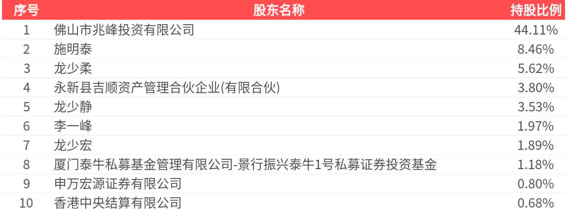 公司股东户数为2.47万户,前十大股东持股数量为1.13亿股,占总股本比例为72.04%,前十大股东持股情况如下: