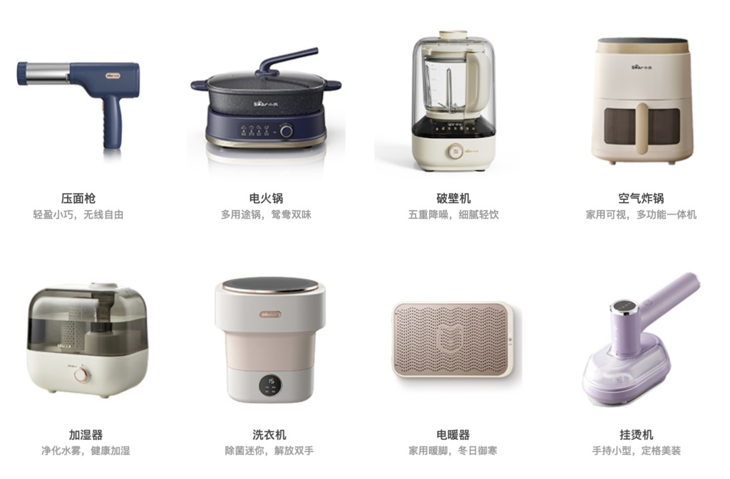 小熊电器成立于2006年3月,是一家以自主品牌“小熊”为核心,从事小家电研发、设计、生产和销售的实业企业。公司小家电产品包括厨房小家电、生活小家电、个护小家电、母婴小家电及其他小家电,其中厨房小家电根据功能进一步划分为锅煲类、电热类、壶类、西式类和电动类五类产品。