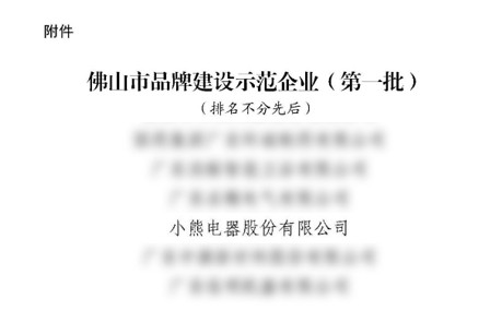 小熊电器作为小家电行业代表,成功通过了佛山市市场监督管理局组织开展的“品牌建设示范企业”认定。其凭借在产品质量、标准建设、品牌影响力等方面的突出表现,成为小家电行业“高品质”品牌建设标杆。