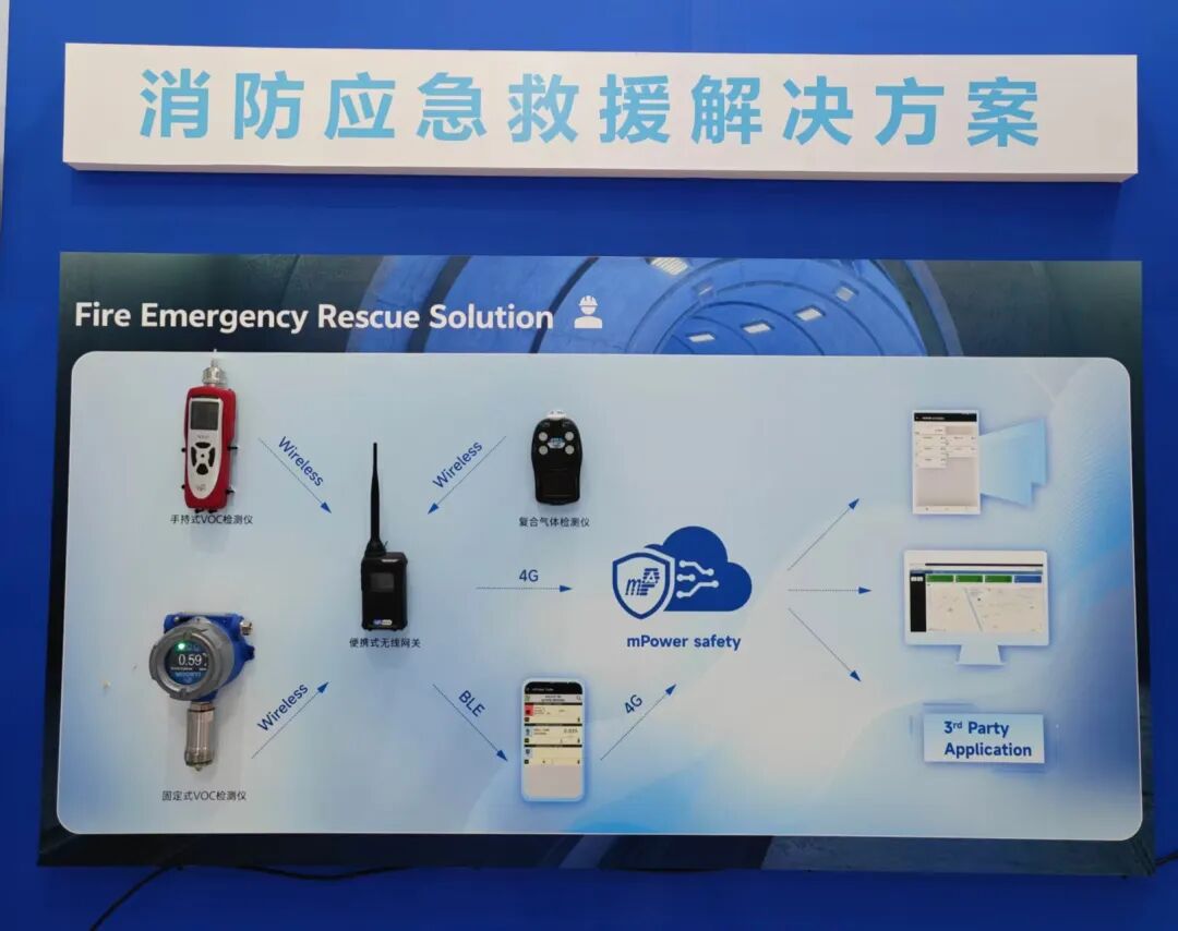 该方案采用62总线系统控制,由可燃气体报警控制器、声光警报器、工业及商业用途点型可燃气体探测器等设备构成;产品具有现场布线简单、灵敏度高、响应快速等优势,可将报警信息、数据上传云平台,实现手机、电脑的远程监控。是集预警、报警与远程控制于一体的一站式解决方案。同时,现场还展出了盟莆安的独立式有毒气体探测器(MP840)以及工商业用途点型可燃气体探测器(MP820),是采用模块化设计以及智能化传感器检测技术的隔爆型固定式点型可燃气体探测器,防护等级IP67/IP68,能够通过不同方式与云平台连接,实现远程控制。