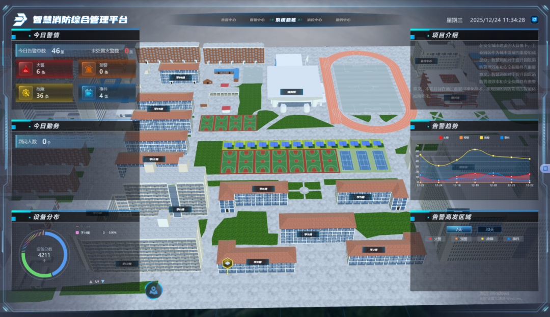 北京语言大学校园消防管理面临多重突出痛点与隐患,具体包括消控室布局分散,多品牌主机无法统一管控,火情确认、处置及责任划分无法形成闭环,管理成本较高。同时,违禁电器监管乏力,传统人工巡查效率低、取证难,难以防范大功率电器引发的火灾风险。针对校园核心需求,青鸟消防量身打造全场景智慧消防解决方案,以“集成化、智能化、闭环化”为核心推进升级。在消控室优化上,于校园安防监控中心设立中心消控室,通过光纤组网进行整合,将教学楼独立主机合并,新增主机直接接入中心管控,大幅缩减空间与人力成本;在智慧平台搭建上,构建基于物联网、云计算的综合管理平台,集成2D/3D建模定位、AI视频联动、电气与消防水系统监测等功能,联动摄像头识别火焰、烟雾及通道占用,通过APP、短信等多渠道实时推送警情;同时,为多栋楼宇加装无线烟感、温感及热成像设备,依托自主研发的HRP无线技术实现有线无线融合,搭建用电安全监测系统,精准防控电气火灾,形成巡查、维修全流程闭环管理。