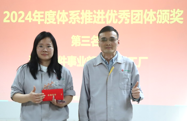 经过公司运营中心质量管理部体系执行审核小组评价,综合各工厂的执行得分、改善措施分析及问题改善的落实三大模块的综合评分,从以质量管理体系认证为基础的12个努力与进步的团队中,评价出了3个管理体系推进表现更突出的团队进行了表彰奖项的颁发,同时也对在管理体系推进中虽未获奖却展现出巨大潜力与积极态度的团队,颁发了象征团队合作力的“团队拼接奖牌“,以示体系发展需以团队力量而努力奋斗,每一份努力都值得被看见,每一份坚持都应得到鼓励。